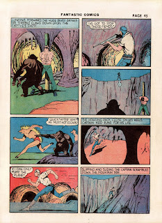 This is Captain Kidd, and is it a doozy of a wacky adventure this time. You wouldn't expect an aviator Hero to be exploring D&D-like caves and encountering what appear to be a cross between gnolls and troglodytes, along with a gorilla. How weird that, when confronted with such bizarre monsters, it's the gorilla Kidd is worried about.