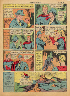 Jupiter demonstrates a Mass Teleport spell that, gosh, that would have to be a 7th-level spell, especially since Johnson isn't anywhere near them when Jupiter and the mad scientist teleport. Johnson is, of course, only there to either witness Jupiter's victory (because Jupiter needs it for his ego) or -- as happens -- to give the mad scientist one last chance to threaten them. Polymorph is already a 4th-level spell. Based on the 7th-level spell alone, we know Jupiter is at least 15th level, and that's with 13 brevet ranks, just for what we see in this story. And I don't even remember how many brevet ranks we had to assign him last time!